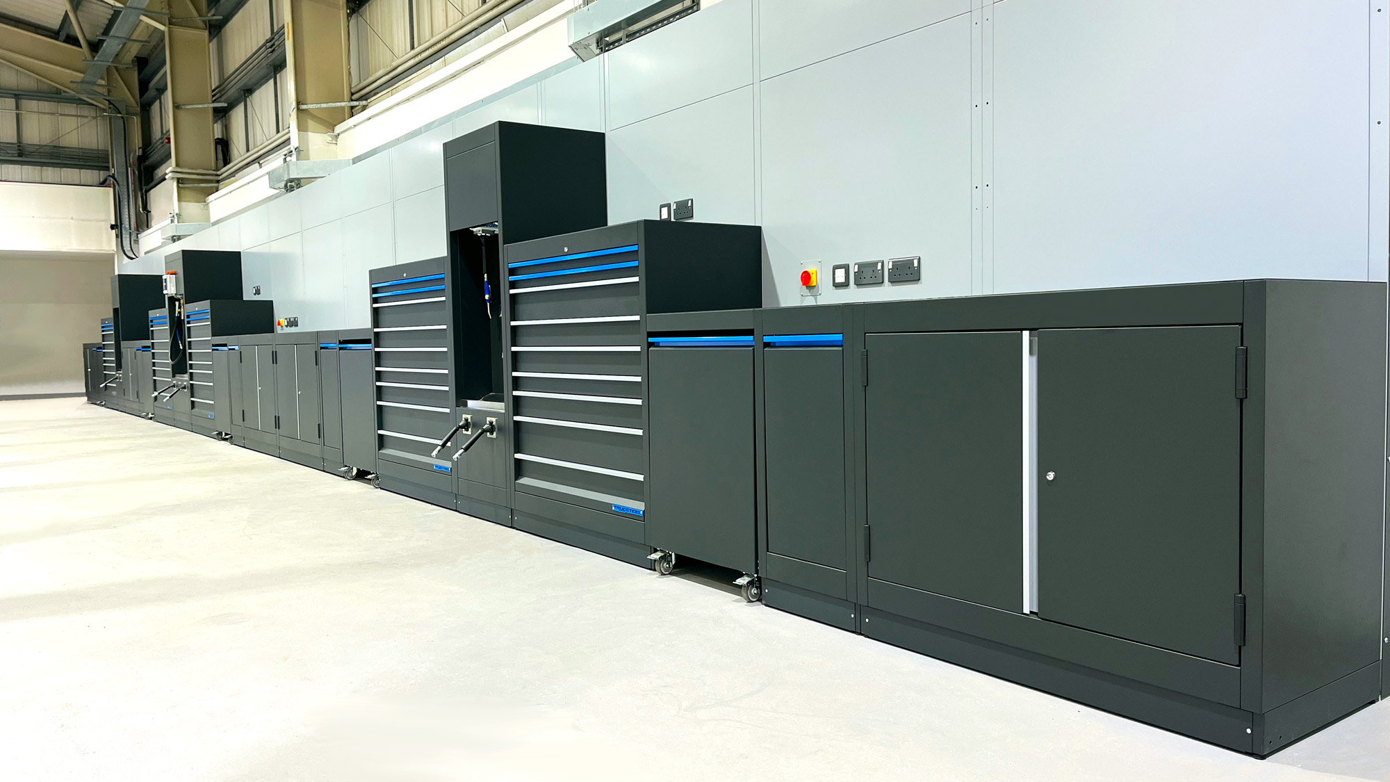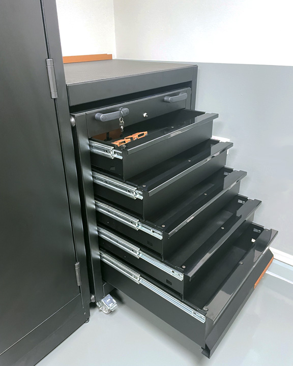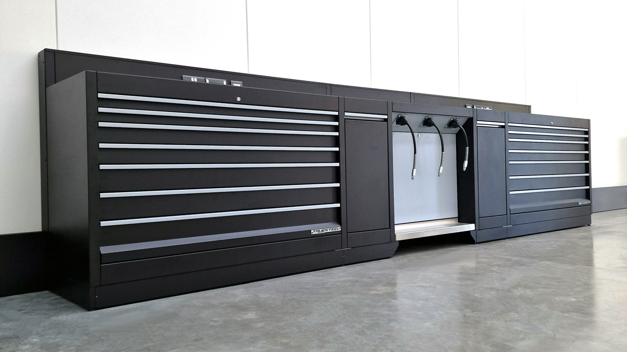 TRUESTEEL’s design and manufacturing technique will accommodate a vast range of different size toolboxes, storage cabinets, automotive tools safe storage, central services cabinets and in-house waste separation and management.