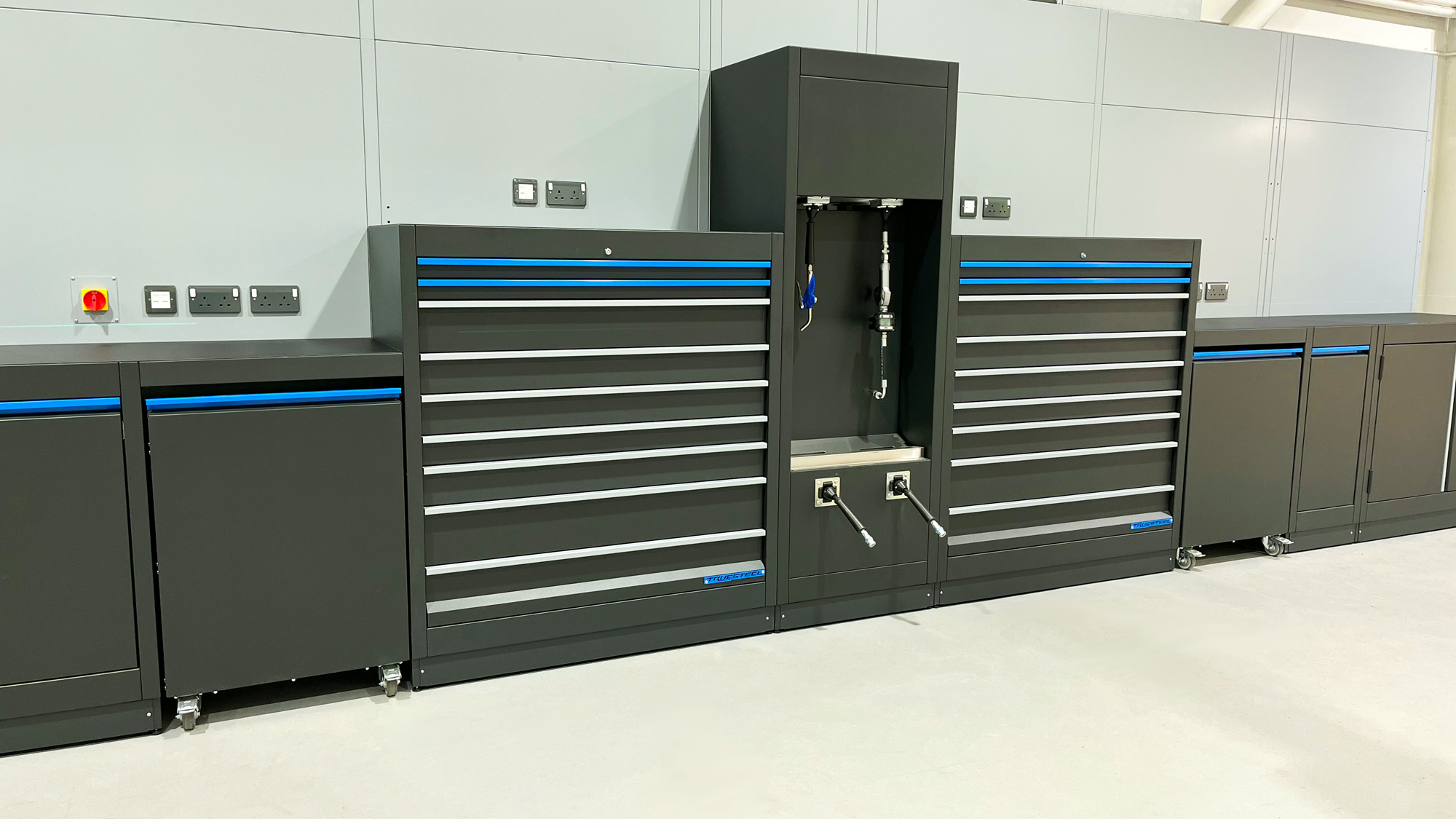 TRUESTEEL strength and longevity is a core feature within the design. Using 1.5mm and 2mm British steel, it is cut, bent and tig welded into exceptionally strong panels enabling the most sturdy workstation cabinets, with unrivalled size and weight capacities for toolbox drawers.